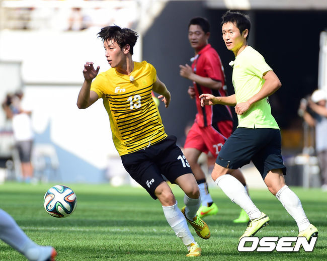30일 오후 서울월드컵경기장에서 열린 FC 서울 올드스타와 KBS 예능 프로그램 '우리동네 예체능'팀의 경기 전반 이시강이 볼을 다루고 있다.