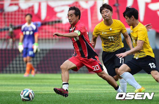 이날 오후 7시 열리는 FC 서울과 바이엘 04 레버쿠젠의 친선경기에 앞서 서울 추억의 올드스타들이 한 자리에 모여 KBS 인기 예능 프로그램 '우리동네 예체능'과 뜨거운 한판 승부를 펼쳤다.