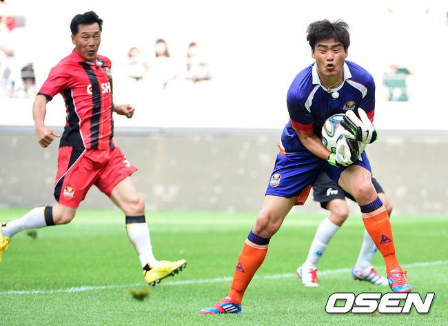 30일 오후 서울월드컵경기장에서 열린 FC 서울 올드스타와 KBS 예능 프로그램 '우리동네 예체능'팀의 경기 후반 임종국이 문전으로 올라오는 볼을 잡고 있다.