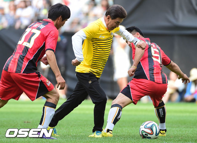 이날 오후 7시 열리는 FC 서울과 바이엘 04 레버쿠젠의 친선경기에 앞서 서울 추억의 올드스타들이 한 자리에 모여 KBS 인기 예능 프로그램 '우리동네 예체능'과 뜨거운 한판 승부를 펼쳤다.