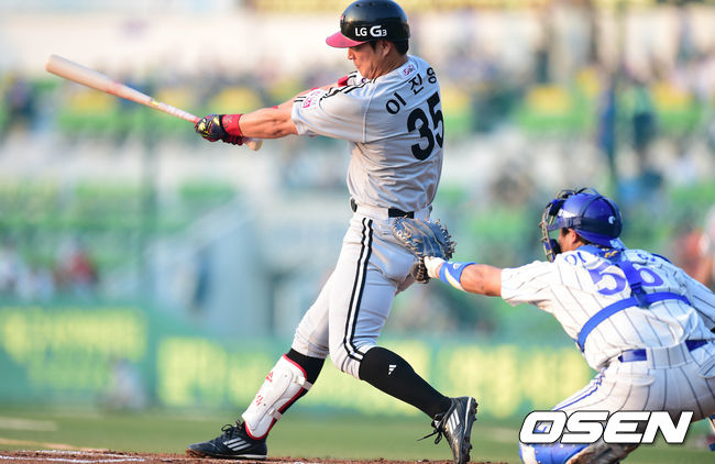 1회초 LG 공격 무사 만루 상황 이진영이 선제 2타점 우전 적시타를 날리고 있다.