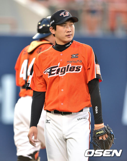 2회말 1사 1,2루에서 한화 선발투수 김혁민이 마운드를 내려가고 있다. 김혁민은 1⅓이닝 4실점을 기록했다.