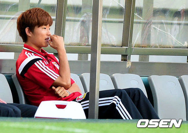 30일 오후 서울월드컵경기장에서 열린 'LG전자 초청 바이엘 04 레버쿠젠 한국투어 2014' FC서울과 레버쿠젠의 경기, 경기에 앞서 류승우가 벤치에서 동료선수들의 훈련을 지켜보고 있다.