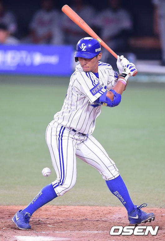 2회말 삼성 공격 무사 1루 상황 이영욱이 LG 선발 류제국의 투구에 몸을 맞고 있다.