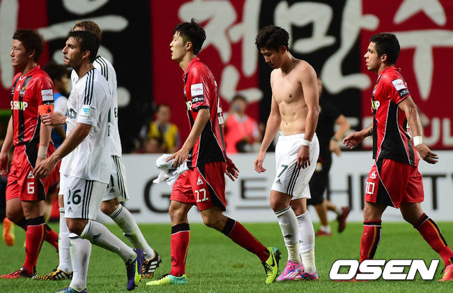 30일 오후 서울월드컵경기장에서 열린 FC 서울과 바이엘 04 레버쿠젠의 경기 전반 종료 후 손흥민이 유니폼을 벗고 그라운드를 나가고 있다.