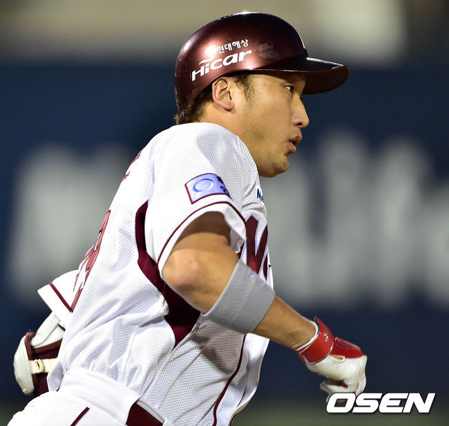 4회말 1사 2루에서 넥센 이택근이 우중간 적시 3루타를 치고 그라운드를 달리고 있다.