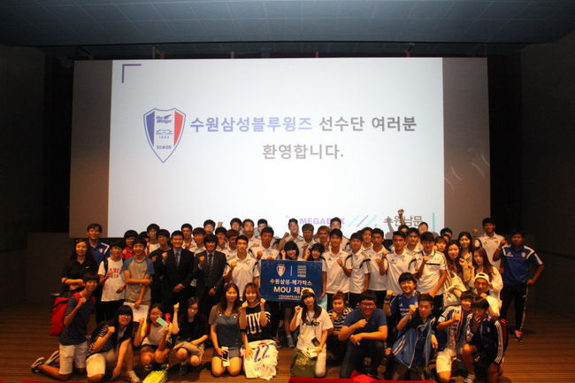 이번 행사는 수원삼성과 메가박스 수원 남문점의 MOU 체결식에 맞춰 실시됐다. 수원삼성-메가박스 수원 남문점 MOU에 따라 수원삼성축구단은 경기장에 메가박스 수원남문점 홍보 현수막을 게재하고, 메가박스 수원남문점은 영화 상영전 블루윙즈 홍보영상 상영, 영화관 내 블루윙즈의 각종 홍보물 설치, 연간회원 할인 혜택 제공 등의 다양한 공동 프로모션이 진행된다.