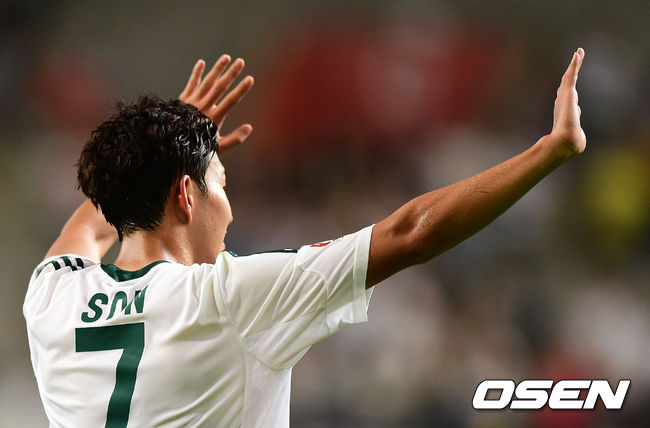 30일 오후 서울월드컵경기장에서 열린 FC 서울과 바이엘 04 레버쿠젠의 경기, 경기를 마치고 레버쿠젠 손흥민이 팬들에게 인사를 하고 있다.