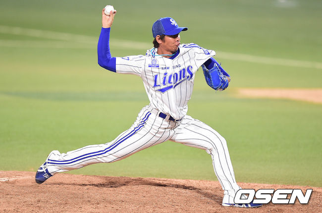 9회초 LG 공격 때 마운드에 오른 삼성 투수 임창용이 힘차게 공을 뿌리고 있다.