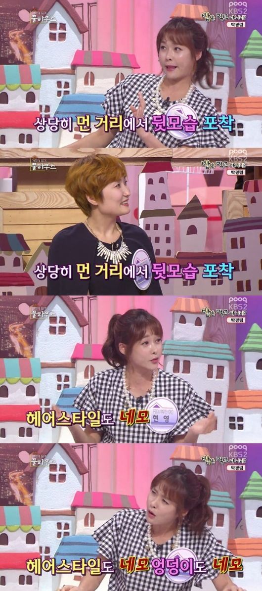 이날 현영은 "목욕탕에서 박경림을 봤다. 상당히 먼 거리에서 봤는데, 헤어스타일도 네모, 엉덩이도 네모였다"고 말했다.