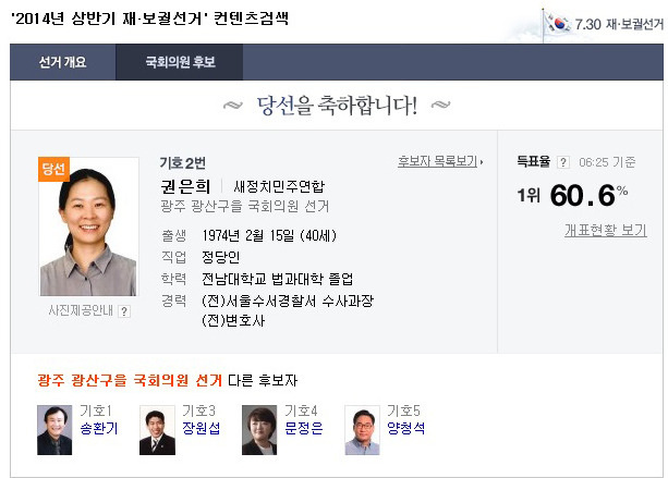 선거결과를 확인한 네티즌들은 “여당이 압승했네, 안철수 퇴진할까?”, “권은희, 이정현, 박광온 후보 당선됐네”, “손학규 떨어졌네”, “권은희, 이정현, 박광온 새로운 국회의원들이 제대로 일을 해주길” 등의 반응을 보였다.