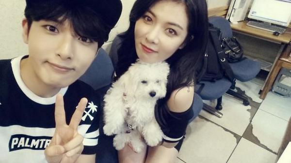 려욱은 지난 30일 자신의 트위터를 통해 "'빨개요' 현아 화이팅! 귀여운 빠숑이랑"이라는 글과 함께 사진 한 장을 게재했다.