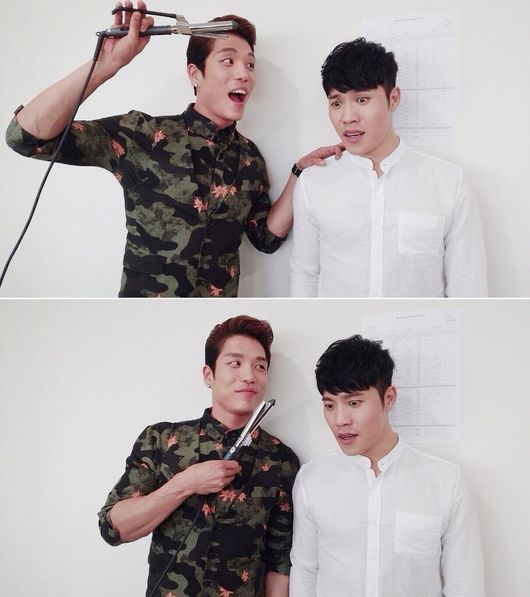 공개된 사진 속 멤버 창민은 고데기를 든 채 익살스러운 표정을 짓고 있는 반면, 이현은 겁먹은 듯한 표정을 지어 웃음을 자아냈다.