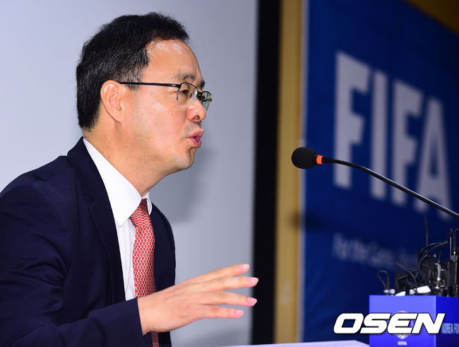 이용수 대한축구협회 기술위원장이 브리핑을 하고 있다.