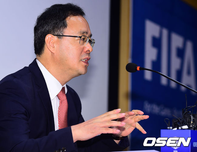 이용수 대한축구협회 기술위원장이 브리핑을 하고 있다.