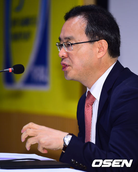 이용수 대한축구협회 기술위원장이 브리핑을 하고 있다.