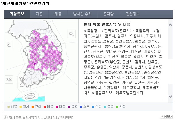 그러면서 전라북도(전주시)에는 폭염경보를 내렸고 경기도(부천시, 김포시, 양주시, 의정부시, 파주시 제외), 강원도(영월군, 정선군평지, 횡성군, 원주시, 홍천군평지), 충청남도(천안시, 공주시, 아산시, 논산시, 금산군, 부여군, 청양군, 예산군, 계룡시), 충청북도(청주시, 괴산군, 영동군, 충주시, 단양군, 증평군), 전라북도(부안군, 군산시, 김제시, 완주군, 무주군, 순창군, 익산시, 정읍시, 남원시), 경상북도(영양군산간, 봉화군산간, 울진군평지, 울진군산간 제외), 경상남도(양산시, 김해시, 밀양시, 함안군, 창녕군, 하동군, 함양군, 거창군, 합천군, 사천시), 서울특별시, 대전광역시, 대구광역시, 세종특별자치시에는 폭염주의보를 발령했다. 제주도남쪽먼바다에는 풍랑주의보를 내렸다.