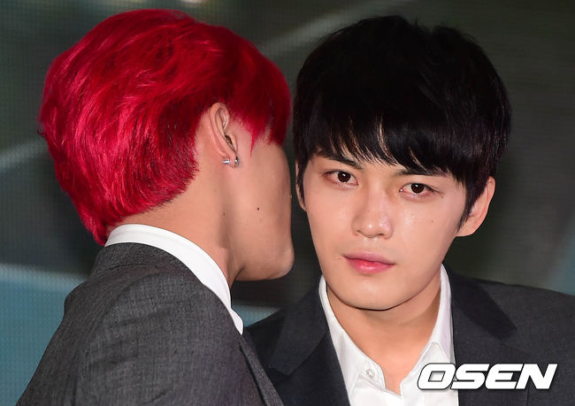 31일 오후 서울 삼성동 코엑스에서 열린 JYJ 멤버십위크 개막 세리머니에서 준수와 재중이 이야기를 나누고 있다.