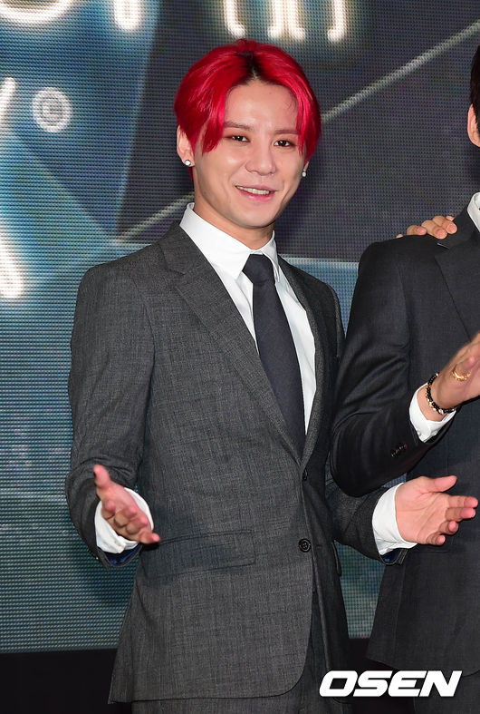 31일 오후 서울 삼성동 코엑스에서 열린 JYJ 멤버십위크 개막 세리머니에서 김준수가 포토타임을 갖고 있다.