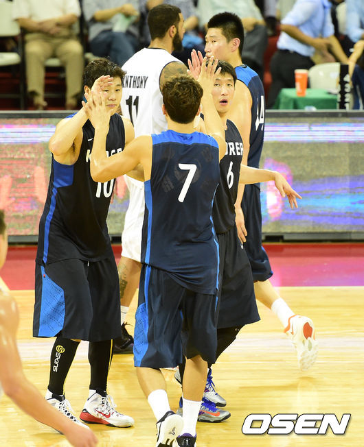 3쿼터 한국 선수들이 역전에 성공하며 기뻐하고 있다./ jpnews@osen.co.kr