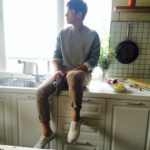 공개된 사진 속에는 싱크대에 걸터앉은 자연스러운 오상진의 모습이 담겨 있다. 특히 오상진은 맨투맨 티셔츠에 롤업 팬츠로 편안한 패션을 완성해 눈길을 끈다.