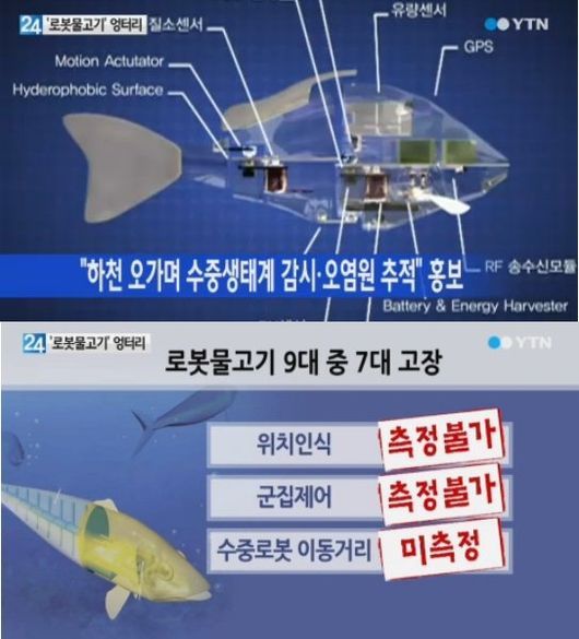 이에 더해 그동안 제작된 로봇물고기 9대 가운데 7대가 고장나 있었고 1대는 테스트 도중 고장이 났다고  감사원은 지적했습니다.