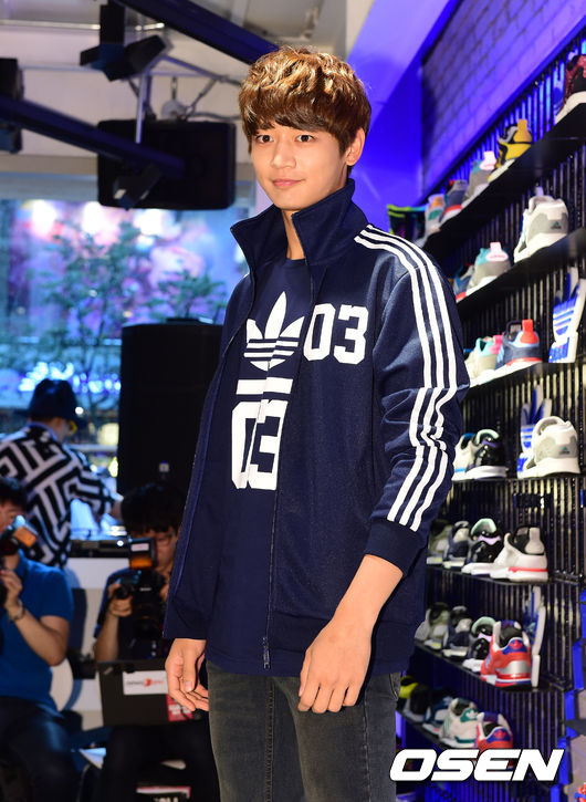 31일 오후 서울 압구정동 '아디다스 오리지널스 서울 플래그쉽 스토어'에서 열린 오픈 기념행사에 참석한 가수 샤이니 민호 포즈를 취하고 있다.