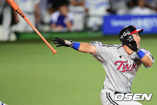 4회초 LG 공격 1사 주자없는 상황 이병규가 추격의 우월 솔로포를 날리고 있다.