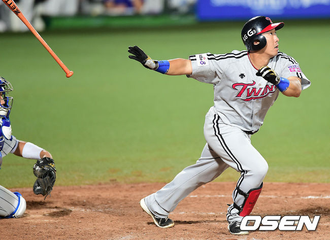 4회초 LG 공격 1사 주자없는 상황 이병규가 추격의 우월 솔로포를 날리고 있다.