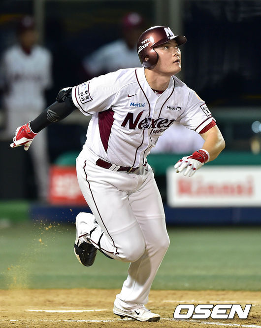 7회말 1사에서 넥센 이성열이 우월 솔로 홈런을 치고 있다.
