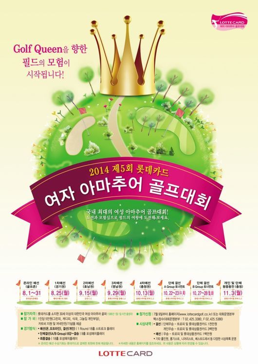 한편 '제5회 롯데카드 여자 아마추어 골프대회'는 온/오프라인을 결합한 대회이다. 오프라인에서 진행하는 예선은 대회 홈페이지 및 대회운영본부로 팩스를 통해 접수 가능하다. 오프라인 결선 단체 우승팀에게는 트로피 및 1000만 원 상당의 롯데상품권카드를 증정하고 개인 우승자에게는 트로피 및 롯데상품권카드 300만 원 등 푸짐한 상품을 제공한다.