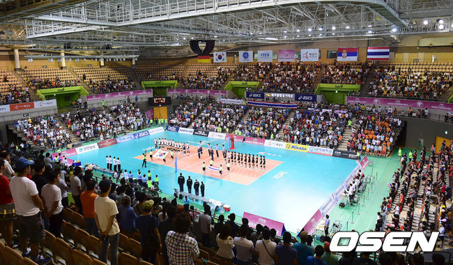 1일 오후 경기도 화성실내체육관에서 열린 '2014 그랑프리 세계여자배구대회' 대한민국과 태국의 경기, 경기시작전 선수들이 라인업하고 있다.