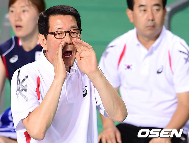 1일 오후 경기도 화성실내체육관에서 열린 '2014 그랑프리 세계여자배구대회' 대한민국과 태국의 경기, 1세트 대한민국 이선구 감독이 작전지시를 하고 있다.