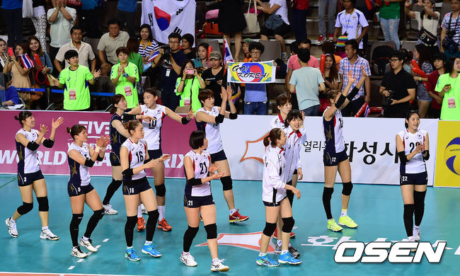 이선구 감독이 이끄는 한국 여자배구대표팀(세계랭킹 10위)은 1일 화성종합경기타운 실내체육관에서 열린 2014 국제배구연맹(FIVB) 월드그랑프리 세계여자배구대회 조별리그 B조 1차전 태국(세계랭킹 12위)과 경기서 세트 스코어 3-1(23-25, 25-22, 25-16, 25-20)로 승리를 거두고 대회 첫 승을 거뒀다.