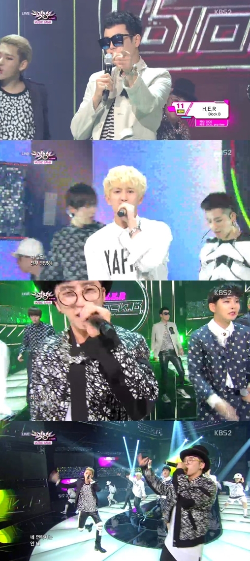 블락비는 1일 오후 방송된 KBS 2TV '뮤직뱅크'에서 신곡 '헐(HER)' 무대로 팬들을 열광시켰다.