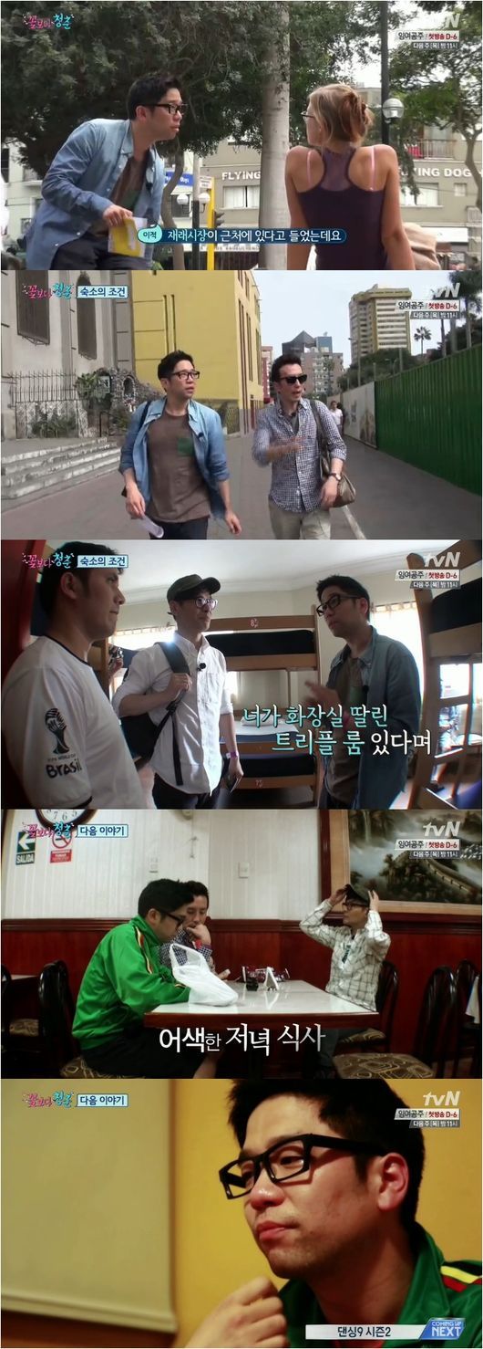‘꽃보다 청춘’의 조합은 그 어느 때보다 좋았다. 절친한 사이들인 이들은 비행 시간 내내 수다를 떨었다. 40대 아저씨들은 육아와 고민을 털어놓았다. 이후 페루에 도착한 후 멤버들은 ‘멘붕’의 연속을 겪었다. 택시 요금 흥정 사기에 당하기도 하고, 허름한 숙박 시설에 당황하기 연속이었다. 세안도구와 갈아입을 옷조차 마땅치 않았기에 궁상에 가까운 여행이 이어졌다. 그 어느 때보다 '생고생'이 이어졌다. 나이 차이가 나지 않기에 힘든 여행 속 서로 고민하고 힘들어하는 감정을 공유하는 게 더 친밀하게 느껴졌다.