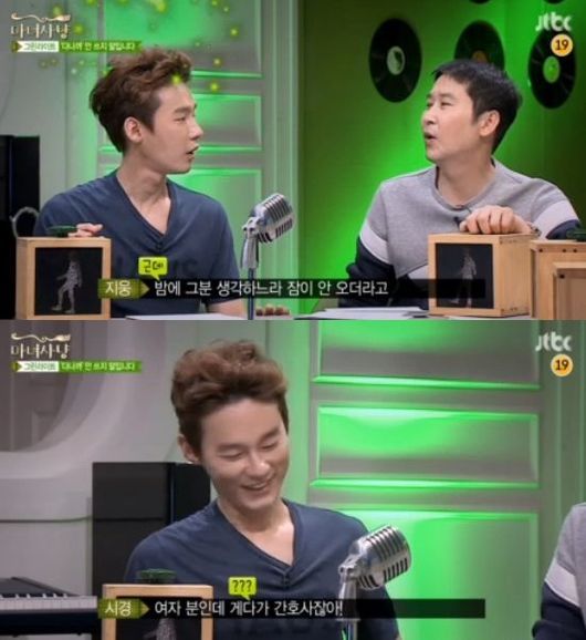 허지웅은 1일 오후 방송된 JTBC 예능프로그램 '마녀사냥'에서 "병원에서 마흔이 넘은 여자 장교를 봤다"면서 "그 분 생각으로 잠이 안 오더라"고 말해 웃음을 자아냈다.