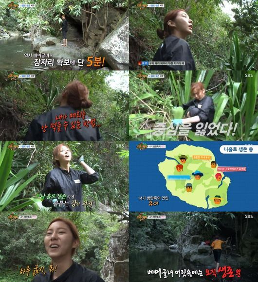 제작진 뿐 아니라 시청자들의 눈길을 끈 '베어글녀' 유이의 모습은 이게 다가 아니었다. 여자 연예인으로서의 내숭이나 연약함보다는 생존이 우선인 유이였기 때문. 홀로 생전 처음 불 피우기에 도전한 유이는 건초를 구해 계곡물을 넘어 보금자리로 돌아가려했따. 그 과정에서 유이는 바위에서 낙상하는 사고를 겪고야 말았다. 그럼에도 그는 놀란 제작진의 마음은 민망할 정도로 큰 목소리로 "내 짚!"을 외쳤다. 정글 초보인 유이는 어느샌가 생존을 위한 유이가 돼 있었다.