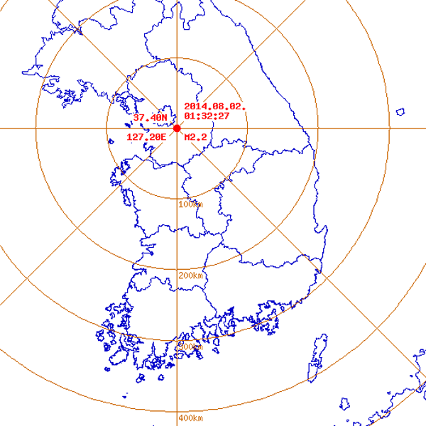 경기도 광주시 인근에서 2일 오전 1시 32분에 진도 2.2의 지진이 발생했다.