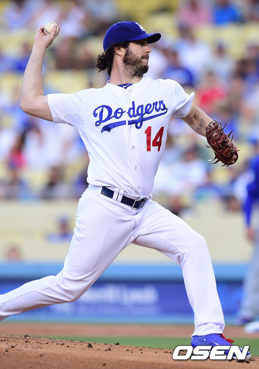 다저스 댄 해런이 역투하고 있다.