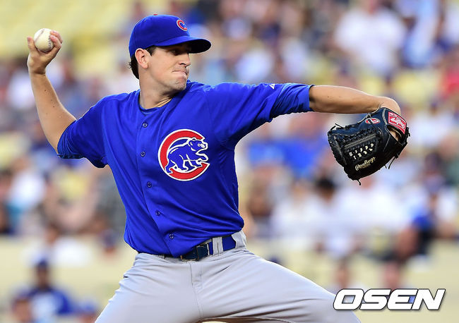시카고 컵스 카일 헨드릭이 역투하고 있다.