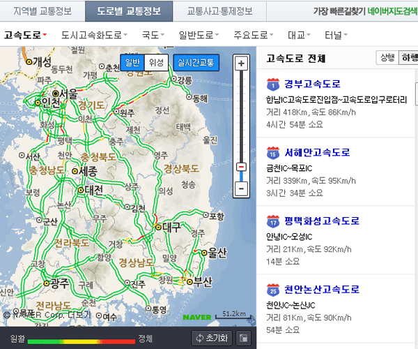 서해안고속도로는 목포 방면으로 서평택에서 서해대교 부근까지 12km 정도 정체가 지속되고 있다. 경부고속도로 부산 방면은 기흥 동탄에서 남사, 안성과 천안 부근 등이 원활하지 않다.