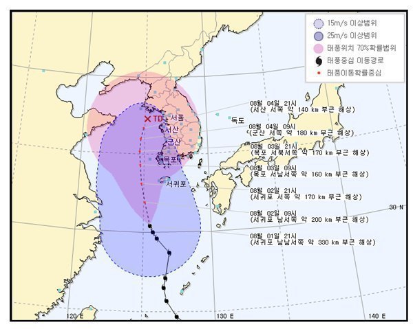 기상청은 제주도에는 4일까지 100∼200㎜, 많은 곳은 300㎜ 이상의 비가 내리겠다고 예보했다. 해상에는 파도가 4∼8m로 매우 높게 일 것으로 전망했다.