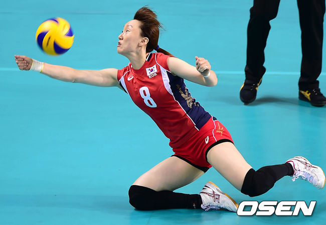2일 오후 경기도 화성실내체육관에서 열린 '2014 그랑프리 세계여자배구대회' 대한민국과 독일의 경기, 1세트 대한민국 남지연이 어려운 공을 걷어 올리고 있다.