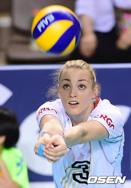 2일 오후 경기도 화성실내체육관에서 열린 '2014 그랑프리 세계여자배구대회' 대한민국과 독일의 경기, 2세트 독일 미녀 선수 루이자 립만이 몸을 풀고 있다.