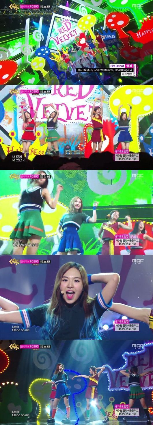 레드벨벳은 2일 오후 방송된 MBC 음악순위프로그램 '쇼! 음악중심'에서 데뷔곡 '행복(Happiness)'의 무대를 선보였다.
