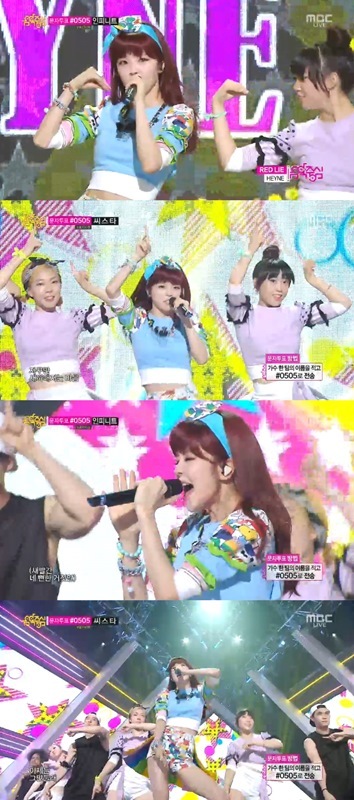 혜이니는 2일 오후 생방송된 MBC '쇼! 음악중심'에서 세 번째 디지털 싱글곡 '새빨간 거짓말'의 새포인트 안무인 '뿔춤'의 깜찍함을 뽐냈다.