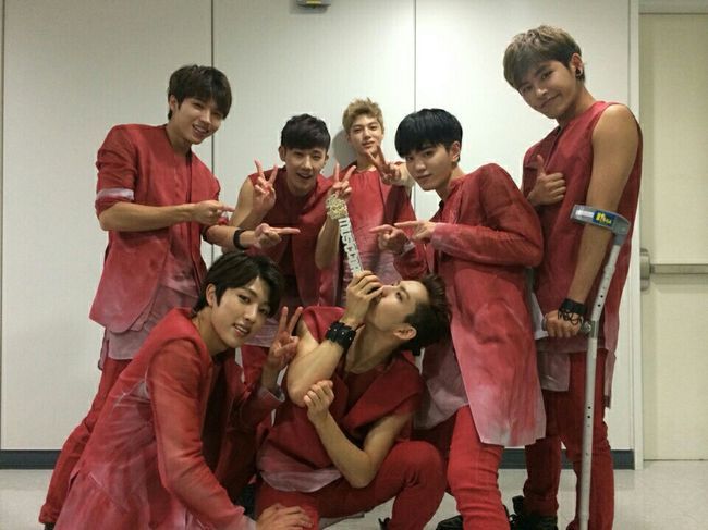 2일 공개된 사진 속 인피니트 멤버들은 ‘쇼! 음악중심’ 1위 수상 후 트로피를 든 동우를 중심으로 기쁨의 표정을 짓고 있다. 동우는 트로피에 격한 뽀뽀를 하며 1위 기쁨을 표현했다.