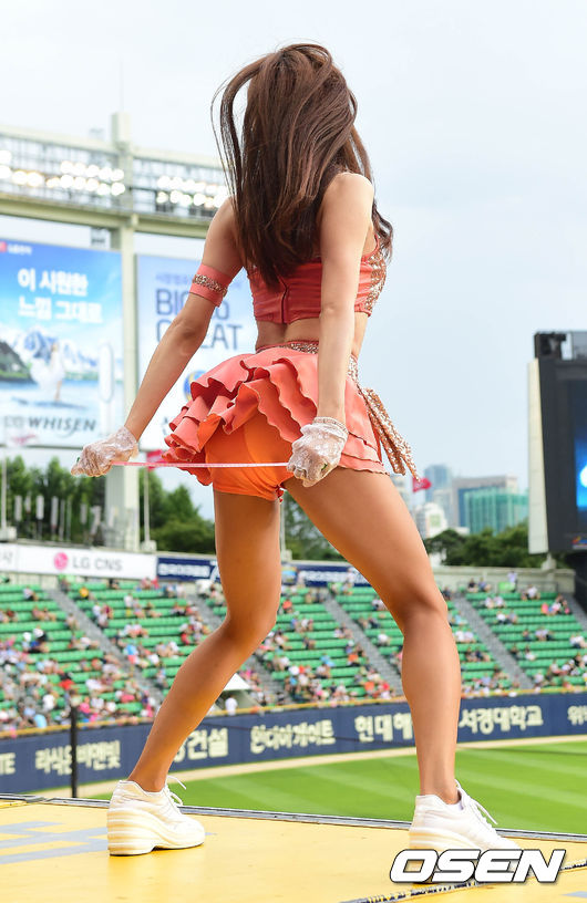 2일 오후 서울 잠실구장에서 열린 '2014 한국야쿠르트 세븐 프로야구' LG 트윈스와 넥센 히어로즈의 경기, 넥센 치어리더들이 공연을 펼치고 있다.