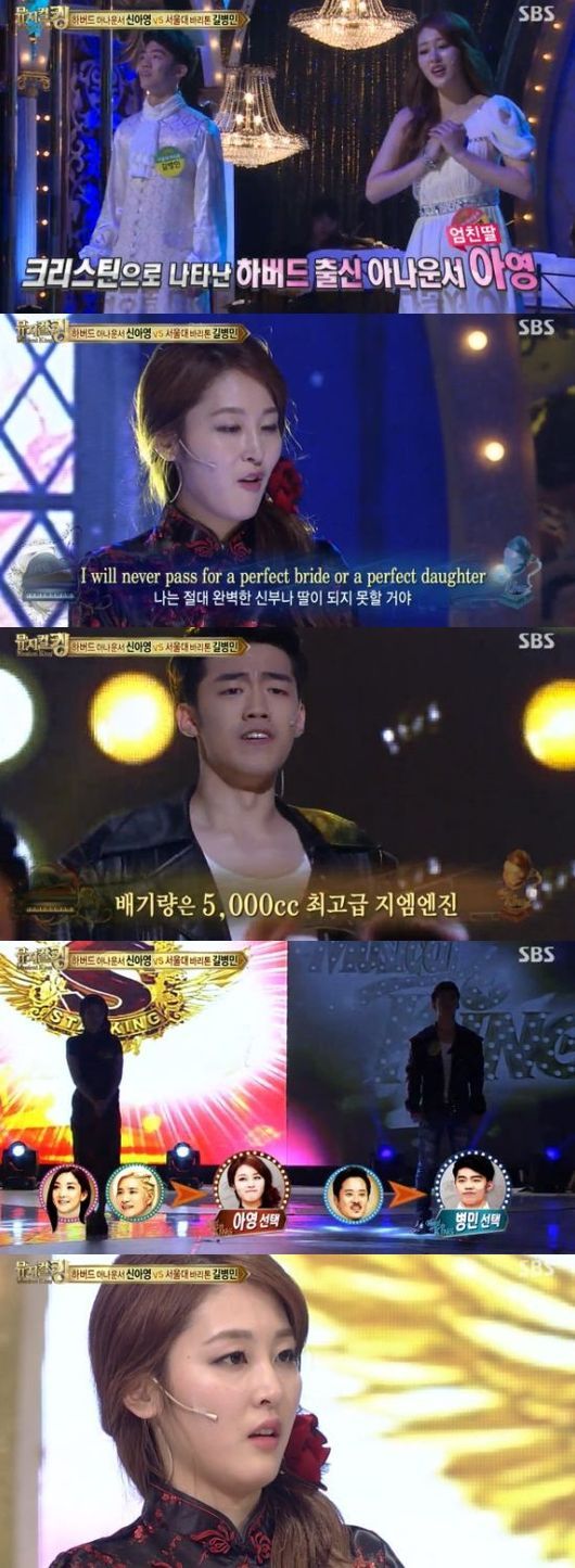SBS스포츠의 신아영 아나운서가 '뮤지컬킹' 3라운드에 진출했다.